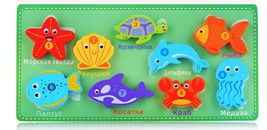 В наборе: - рамка ( 29,5 х 14,5 см.) - 9 фигурок. Материал: дерево. Соответствует требованиям безопасности продукции. Для детей от 3-х лет.