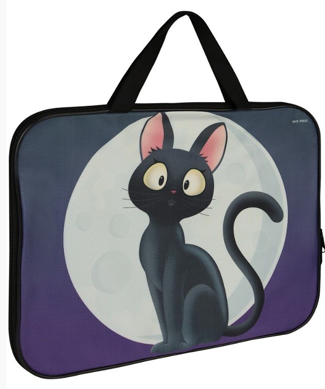 Папка детская А4 КОТ И ЛУНА (П-5224) с ручками, на молнии, печать на ткани