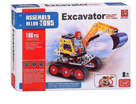 Конструктор металлический "Экскаватор" (186 дет.) в коробке 567