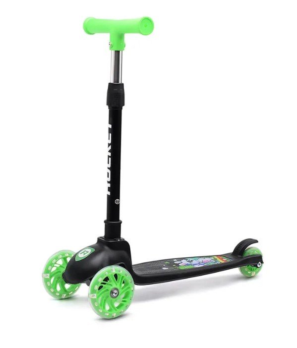 • Самокат складной.• Размеры самоката: 55 х 21 х 61 см.• Регулируемая по высоте рулевая стойка: 60, 66, 72 см.• Задний ножной тормоз.• Колёса из полиуретана.• Диаметр передних колёс: 11 см.• Диаметр заднего колеса: 8 см.• Разноцветная подсветка колес во время движения.• Без амортизатора.• Полезная длина деки: 25 см.• Ширина деки: 12 см• Ширина руля: 22 см.• Диаметр ручек: 3,5 см.• Максимальная нагрузка: 30 кг. • Рекомендуемый рост: 85 – 115 см.• Соответствует требованиям безопасности продукции.