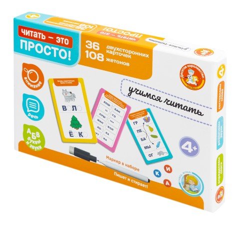 Развивающая игра для детей «Читать - это просто! Учимся читать» - это набор карточек с заданиями для тренировки навыков чтения.