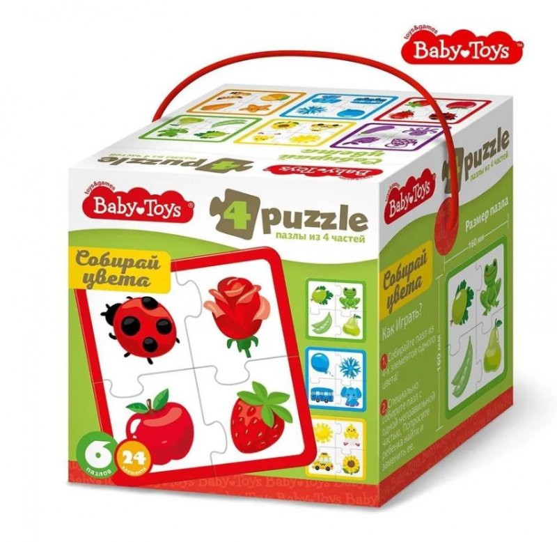 Пазлы "Собирай цвета". Состав игры: 6 картинок по 4 элемента. Размер картинки 15х15 см. Материалы: картон. Для детей старше 3 лет.