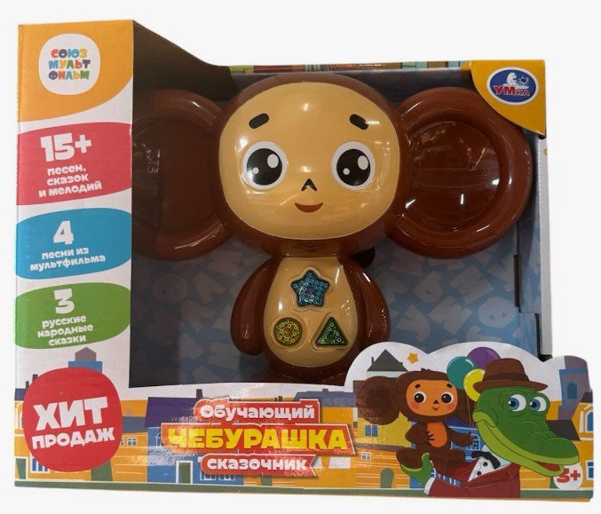 - Сказочник Чебурашка Союзмультфильм (30 песен, сказок, загадок, звуков, свет., на бат.,) в коробке HT