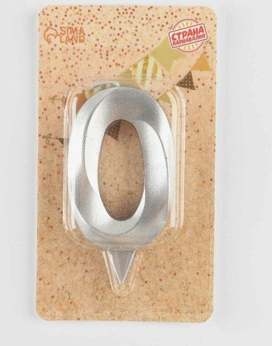 Свеча в торт «Грань», цифра 0, серебряный металлик, 6.5 см 5928494
