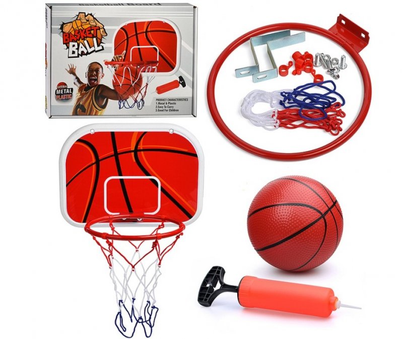 В комплекте: металлическое кольцо, сетка, мяч, насос, крепление для кольца.